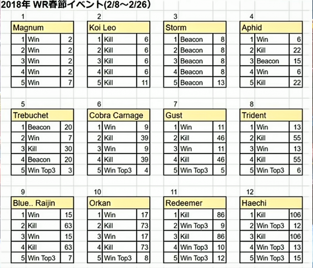 ・スペシャルタスクをクリアすると、前半:Shocktrain(ショックトレイン)×2、Bulgasari(プルガサリ)。後半:Storm(ストーム)×2、Hover(ホバー)が手に入る