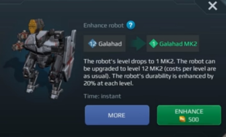 MK2 MK2公式動画![]() | MK2とは、機体、及び武器を最大LV12まで上げる(続にカンスト)と、Au500でさらにグレードアップ出来るシステムを言う。その際、LV1の状態から再び育成しなければならない。育成の費用と期間は元の状態(以下、便宜上、MK1とする)でのそれと同じ。MK2化すると、それぞれのLVに応じて、MK1の時点からステータスが20%上昇する(本体の耐久・盾・アンサイル共に)。 つまり、「MK2のLV1」は「MK1のLV1」の時点より20%ステータスが高くなる(具体例:MK1・LV12のGalahad(ガラハッド):本体の耐久「120000」盾の耐久「199000」→MK2・LV12のGalahad(ガラハッド)::本体の耐久「144000」盾の耐久「238800」)。 この点、MK2化しても、LVが低いうちはMK1・LV12の時点に比べてステータスが劣ることになる。従って、MK1・LV12以上の状態にしたいのなら、MK2のLV10には上げておきたい。 |